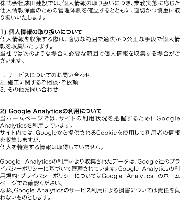 株式会社成田建設へのお問い合わせは、下記のフォームから送信してください。後日担当者よりご連絡いたします。